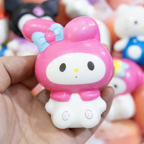 Venta al por mayor para Kuromi Frog Squishy bolsa de malla de rebote lento puesto de oficina juguete de descompresión niños juguete para apretar